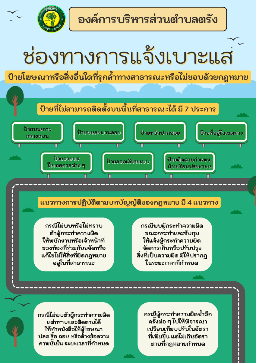 ประชาสัมพันธ์ช่องทางแจ้งเบาะแสป้ายโฆษณาหรือสิ่งอื่นใดที่รุกล้ำทางสาธารณะหรือไม่ชอบด้วยกฎหมาย ประจำปี 2567